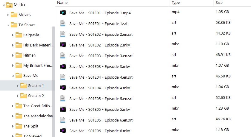 dwestenk 1 Posted November 9, 2020 Author Posted November 9, 2020 6 minutes ago, Happy2Play said: What is the library structure, Library-Show-Episodes or Library-Show-Season x-Episodes? The structure is Media | TV Shows | Save Me | Season 1 | Episodes