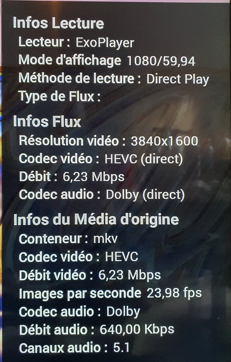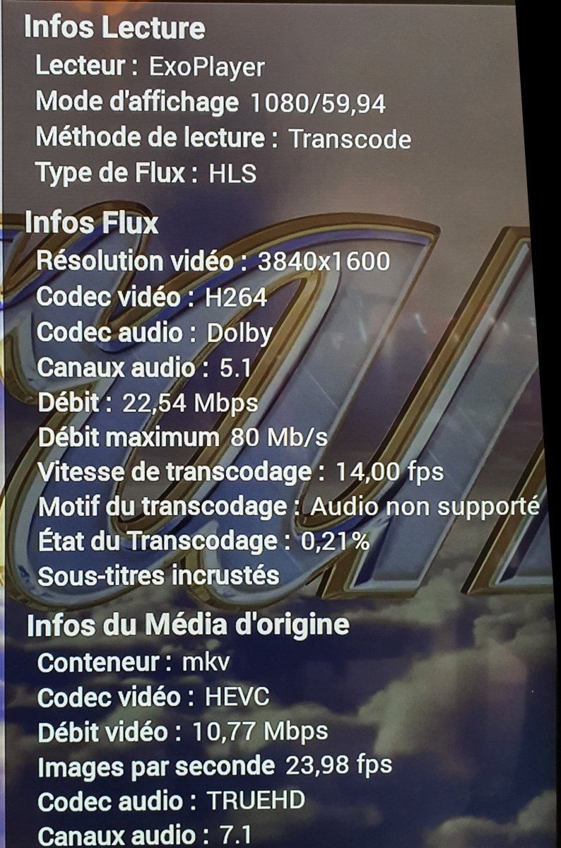 meLIanTQ 1 Posted November 16, 2020 Posted November 16, 2020 Subtitle PGS Bug on the new Chromecast Google TV with AndroidTv 1.8.28g Sorry for my english, i'm french. First report in wrong section sorry for that here The Same files with AC3 is work in Direct Play, with eac3 or HD audio PGS need to transcode the video in burning (not the srt). My Intel nuc server is not powerful for this. The same file with HD audio (TrueHD 7.1 or EAC3 7.1) on FireTV is Ok with local downmix Edit: After test: it's all unsupported audio by the player (Tested: FireTV 4K, GoogleTV, AppleTV 4K, Mibox S, Emby Theater W10) cause the transcode of the video with pgs in burning mode). if the audio is supported the PGS Subtitles isn't transcode. Server: Unbuntu in Docker or w10 have the problem All my files is concerned. I can send log in PM
