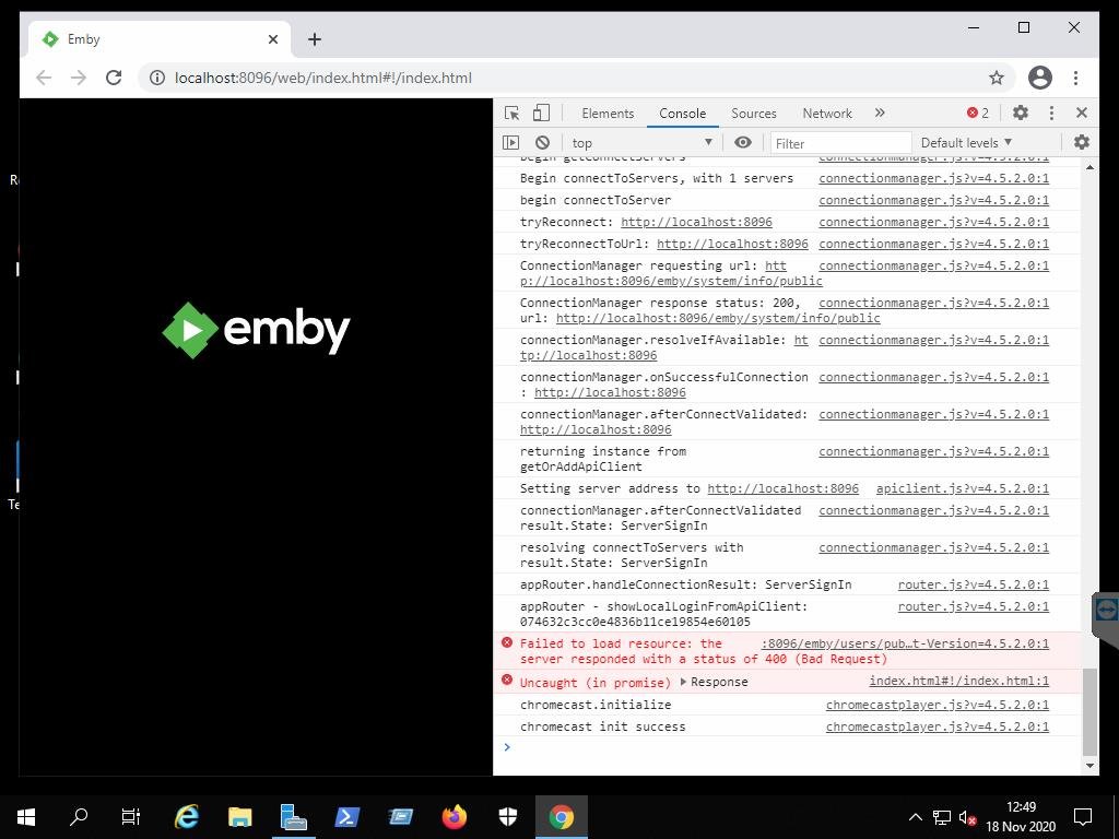 Thurabred 1 Posted November 18, 2020 Author Posted November 18, 2020 23 minutes ago, Thurabred said: Just installed Ember server onto new machine, everything updated and worked well until I setup my Emby premier with Pin, restarted Emby and it will not go further than the attached screen. This has happened to me 3 times today, I completely uninstalled and reinstalled, all worked well until entering my Emby Premier pin. I have tried various browsers and still have the same response, I have followed all this issues in the forum as well to no avail, please assist urgently.