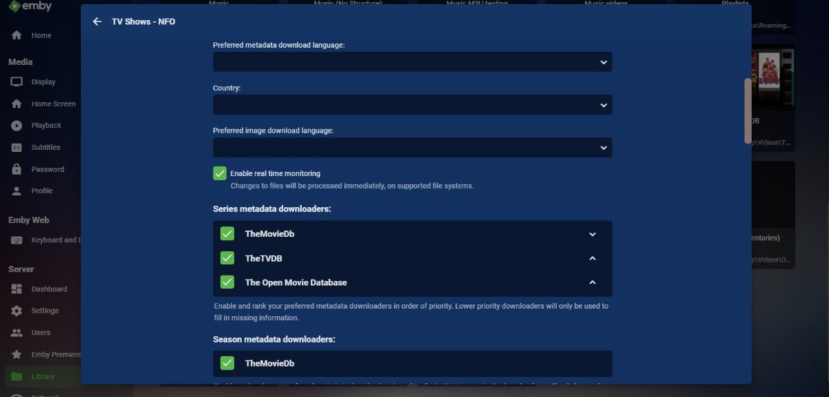 Eagleheart 0 Posted November 26, 2020 Author Posted November 26, 2020 Thanks for the reply! I don't see any metadata download order on the advanced library page though: https://i.imgur.com/5v4n7kG.png And this is the dashboard page: https://i.imgur.com/dHQekES.png I feel like I'm looking at the wrong pages or something because library is not accessed through dashboard from what I am looking at. I am very confused!