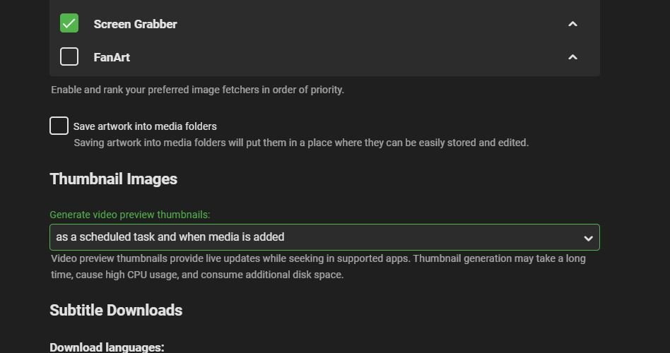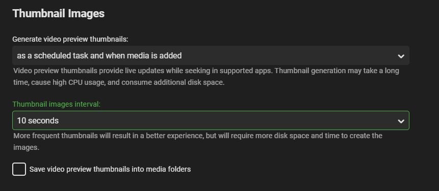 shackbill 22 Posted November 28, 2020 Author Posted November 28, 2020 3 minutes ago, Luke said: No, that's for general artwork. Thumbnails have their own option in library settings. You may have to use the toggle to show advanced options in order to see it. This is all i see under Thumbnails in ADVANCED tab