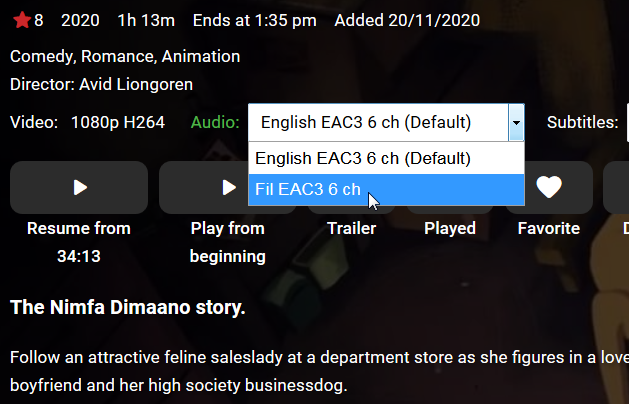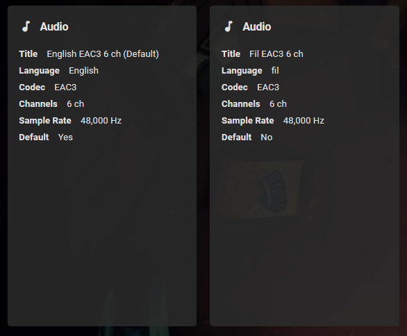 seanbuff 1316 Posted December 19, 2020 Posted December 19, 2020 Yeah, it looks like you may have this advanced library option selected and the actual 'Track name' in the file is saved as 'Fil EAC3 6 ch' Try changing the above Emby option to 'Generate user friendly names using track information' and see if you have a better outcome. Failing that, open the file in MKVtoolnix and remove the track name from the audio channel and remux the file again.