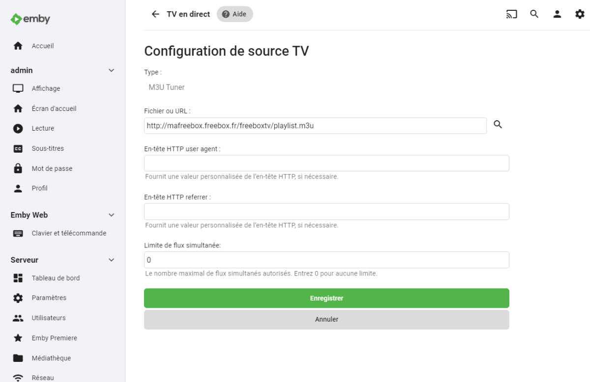 Carlo 4560 Posted December 21, 2020 Posted December 21, 2020 On 12/20/2020 at 7:03 AM, phxardant said: Hello, I would like to see the channels of my freebox on emby with the IPTV extension I tried using this address but without success ( http://mafreebox.freebox.fr/freeboxtv/playlist.m3u ) I can forget something, if someone can help me. Hi, I can't access that m3u file from my location but would assume it's a listing of free TV streams? If so you can likely use this in Emby but not the way you were trying to add it. You would not use the IPTV plugin which is more for single streams or video camera but not for TV use. Instead you would set this up in Live TV. You could then setup an electronic guide for your programming information. Please follow the following Knowledge Base article for help with this setup. https://support.emby.media/support/solutions/articles/44001160415-live-tv-setup