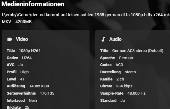 mholin 23 Posted December 29, 2020 Author Posted December 29, 2020 (edited) I do not believe this is an issue of bitrate. Here is my version of 1968 'Deadfall" All my movies with horizontal pixel between I guess 1280 - 1800 are tagged as 720p movie during playback. This really does affect all my 4:3 and 5:3 movies. Nobody else with this issue here? strange Edited December 29, 2020 by mholin