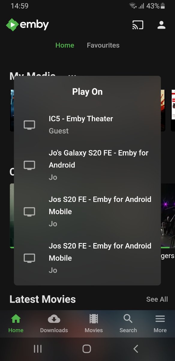 RSVR 5 Posted December 27, 2020 Posted December 27, 2020 Hi, We have a windows media server connected to our TV which hosts emby server plus emby theater desktop. We use emby client on our android phones as a remote control for the Emby Theater on the media server. Is there any way to remove all the devices in the 'play on' list leaving just the emby theater option? See photo for current messy list. We'd just like one device in there. Thanks