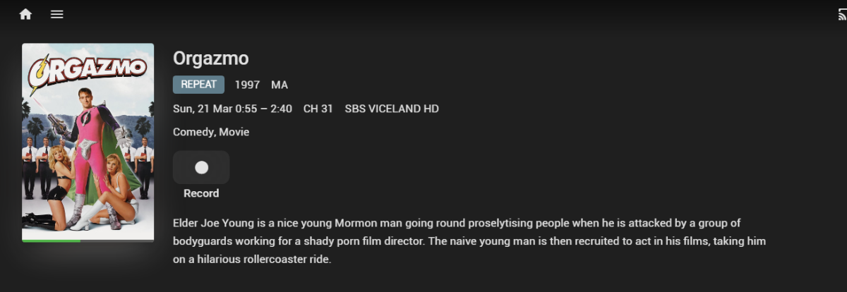 denz 501 Posted March 15, 2021 Author Posted March 15, 2021 (edited) It made me laugh when I saw this good old SBS channel with their weird programming. There is no option to delete it. Just like last time it will only disappear from continue watching once the movie finishes which will be on Sunday. I changed the mapped guide data of that channel to another channel it disappeared but when I mapped the guide data again it is back in continue watching. Edited March 15, 2021 by denz