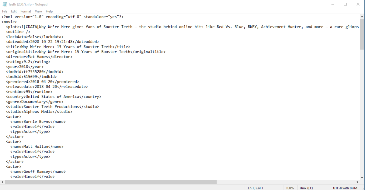Mbppg 3 Posted January 1, 2021 Author Posted January 1, 2021 (edited) 2 hours ago, cayars said: It shows it as being "Iron Man 2" when it was deleted so that would be a good place to look. Also since you have the NFO you can open and look at this for clues. If the movie won't match correctly and the NFO has bad info you may need to remove the NFO or use it to find them movie and then manually identify it from the 3 dot menu. Okay so I opened the nfo and yes it thinks it is Iron Man. Which is funny as I have all the Iron man movies in my Movies folder and they are reporting correctly: So learning a lot here, but how does Emby pull this info in thinking it is Iron Man? Could it be the collections as that has been acting a bit weird as well? I also checked the IMDBid and the [Rec] 2 nfo file has the ID for Iron man and not the correct ID for [Rec] 2 which is tt1245112. Edited January 1, 2021 by Mbppg