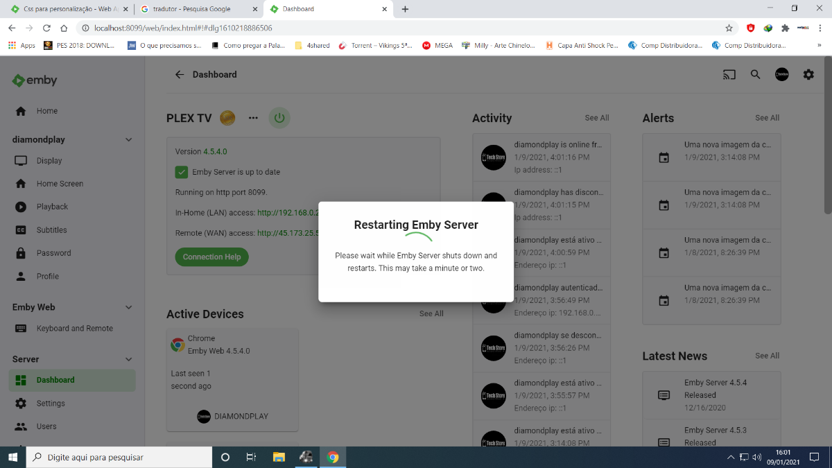 diamondplay 0 Posted January 9, 2021 Author Posted January 9, 2021 can someone help me when i click for the emby server to restart it does this but does not open again alone what can it be?