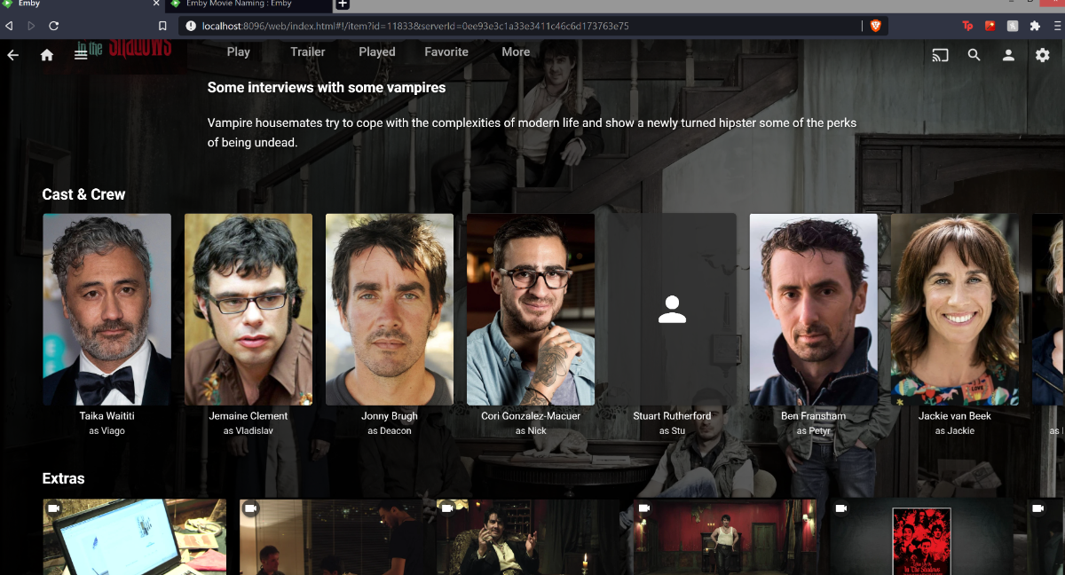 sambehr 0 Posted January 22, 2021 Posted January 22, 2021 (edited) So I love that there's current support for a slew of subfolders for various movie extras (ref: Emby Movie Naming) but I noticed that regardless of the folder structure I use on my drive, everything gets thrown into the "Extras" section when viewing the movie itself (either in a browser or Samsung TV app). Is there a way to get these to show up as separate sections when viewing the movie's details assuming you had those subfolders (i.e. if you had "deleted scenes" and "interviews" in separate folders those would show up as separate sections of extras)? For context, I'm using: Emby Server 4.5.4, Emby Web 4.5.4.0 and Emby for Samsung 1.0.88 (1.0.89 was supposedly released but isn't available when browsing the TV's app store). Edited January 22, 2021 by sambehr