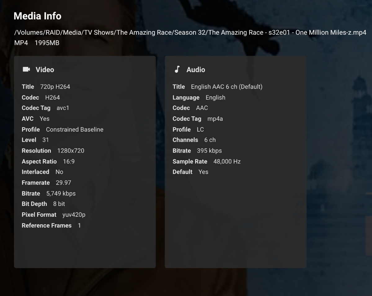 jpkeenanjr 2 Posted February 1, 2021 Author Posted February 1, 2021 Emby Server on MacOS 10.15.7 (Catalina). Logs: /Users/miniserver/.config/emby-server/logs /Volumes/RAID/Media/TV Shows/The Amazing Race/Season 32/The Amazing Race - s32e01 - One Million Miles-z.mp4
