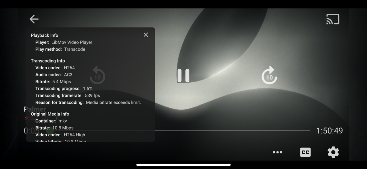 Luke 42078 Posted February 18, 2021 Posted February 18, 2021 Actually I believe in that 8am example the bitrate was respected in all cases. What gave you the impression that it wasn't? The transcoding stats usually take about 10 seconds to appear when you start playing. When you didn't see them, that may have given you some kind of false impression that something wrong was happening. But in both cases the server requested a video bitrate of around 4.6 mbps from the transcoder, and then you add the 384k bitrate for the audio, and that puts you right at 5 mbps, which is exactly what you've configured. Now I do see in your screenshot it says 5.4 mbps, hard to say where that extra .4 is coming from. We'd have to see the ffmpeg transcoding log.