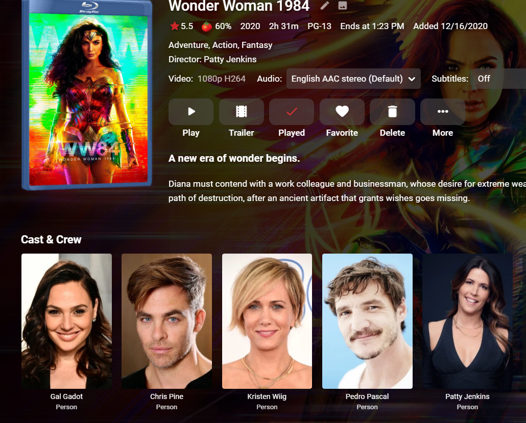 chuckr1958 2 Posted February 14, 2021 Author Posted February 14, 2021 The Open Movie DB was first, before TheMovieDB. I switched the order and refreshed the Wonder Woman 1984 metadata, but now other movies that had character information, such as the photo and actor name but with "Person", completely vanished and even after a refresh, will not pull in the data again.