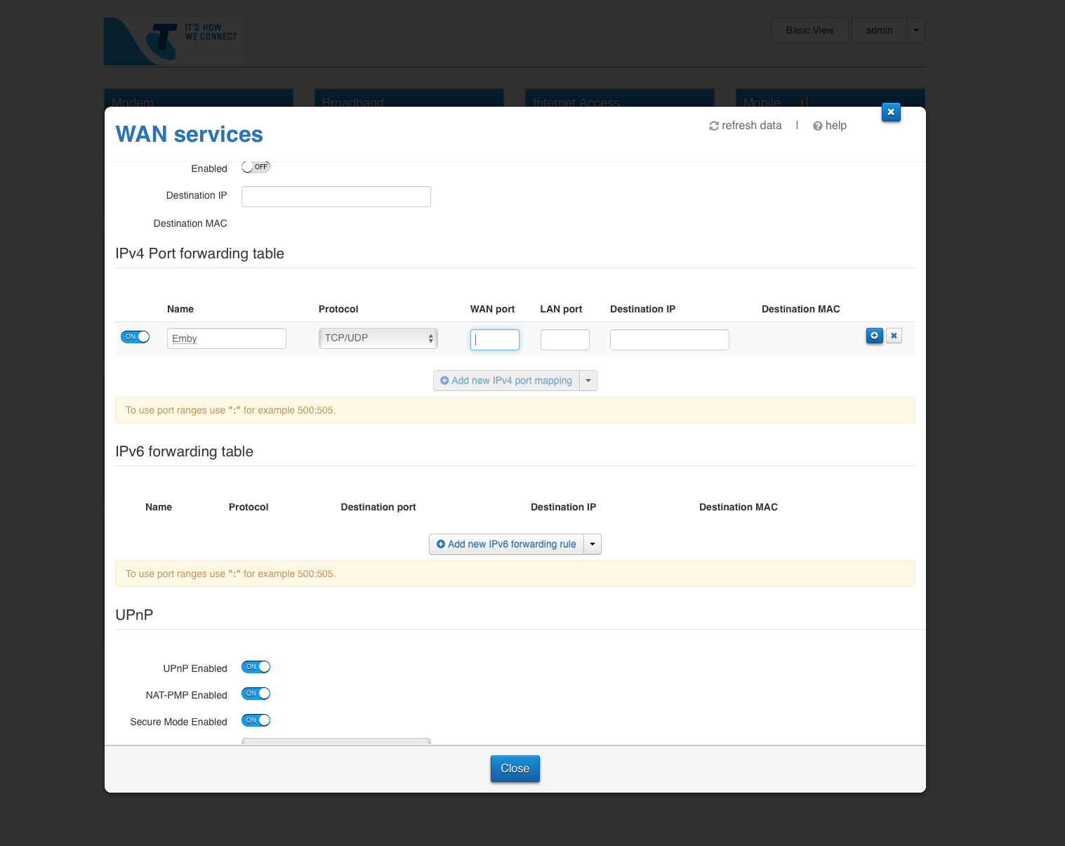 In short my NBN provider (Telstra - in Australia) won't give me basic assistance and the router configure options don't seem to line up with what I need to do. I have attached the screenshots for my Port forwarding screen so any assistance would be greatly appreciated.