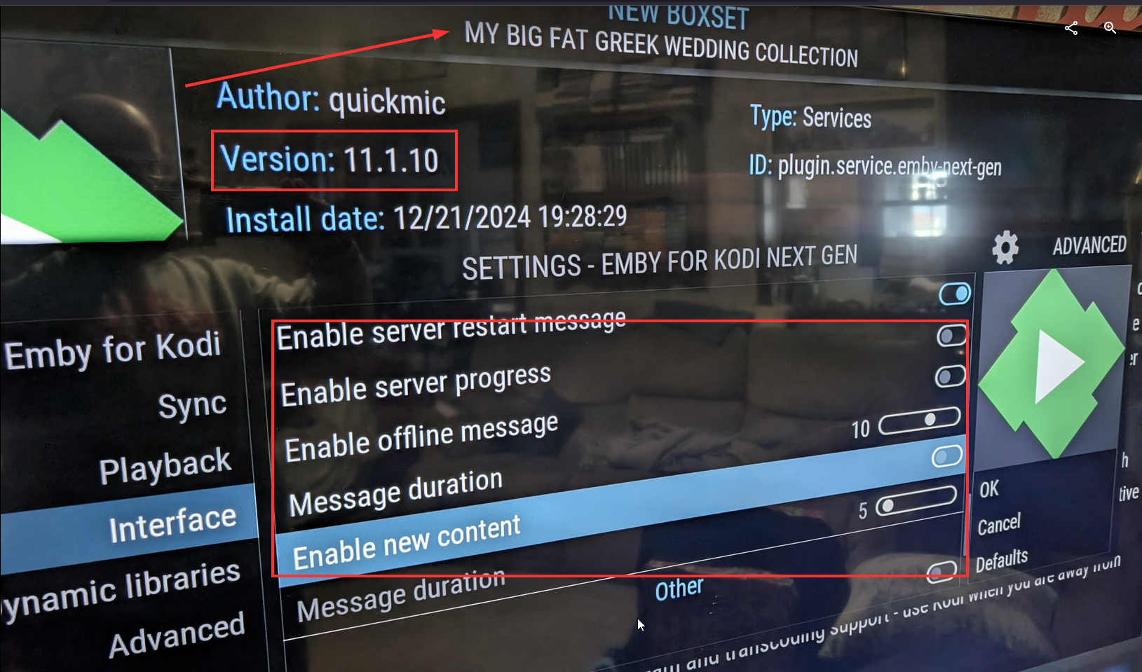Trapperjohn61 24 Posted January 4, 2025 Posted January 4, 2025 9 minutes ago, quickmic said: I added help texts in Kodi for each option. I think the wiki is completely outdated. There is also an FAQ thread, which also needs tlc. The default settings are usually good and no need to change. Actually the reason why you see all that is, cause you switched to expert mode in Kodi. Default is basic, and most options are hidden there. "Enable start sync" should be always on. It was edge case user request to disable that. Nobody needs that. De-Duplication is a new feature and was also a user request. A user has multiple Emby servers connected to the plugin and the servers provided the same content. As a result, lots of content had doubles. This function removes the doubles from Kodi. It can also be used on a single server connection, when multiple libraries provides similar content. Very interesting an informative! fyi when I go into kodi setting in plugin I do not see any donation about each setting just the option to choose if or in or it opens another menu so I do not se more info fyi I have it set to experienced and tried advanced still no info. I am using the aeon nox Silvio skin 21.1 orher question I always wondered why the setting "enable new content" is always default no. I would think most people would be adding to their library and would like kodi to show the new content too. I know it can be switched on . thank you