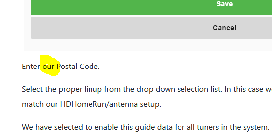 To anyone who can tweak the Knowledge Base I spotted a typo shown in the attached image - from: https://support.emby.media/support/solutions/articles/44001848801 - it should say "...your Postal Code.." and not "..our Postal Code.." I think and then a note about only requiring the first part of the post code would really help too!