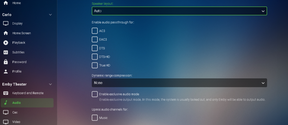 JeremyG 30 Posted April 22, 2021 Posted April 22, 2021 Trying to use emby for TV on my PC (just cause of some annoyances with HDHomerun app). However it's passing audio through raw to my decoder...and because of that I cannot control volume properly with my PC. I've seen screen shots in this forum for PassThru settings but I cannot find them ANYWHERE. I also hope they arent per-user cause i'd hate to change it every time I watch a movie from another device.