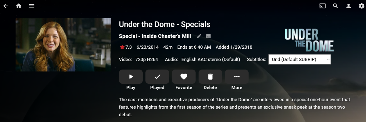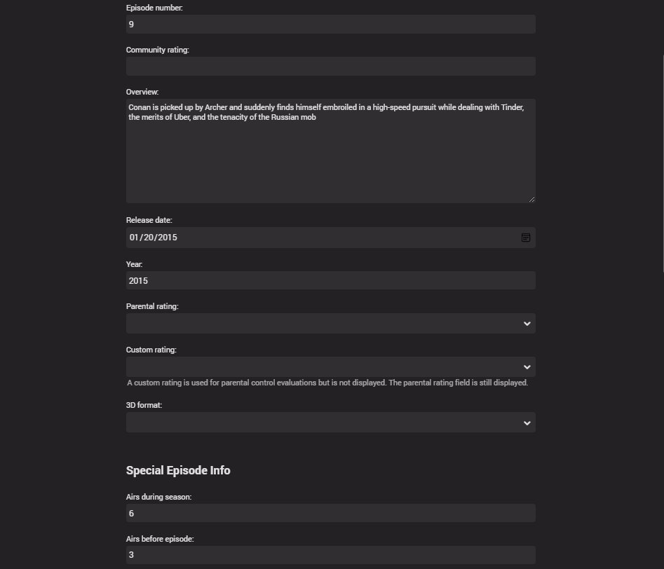rbjtech 5284 Posted April 23, 2021 Posted April 23, 2021 (edited) 1 hour ago, CharleyVarrick said: This seem to throw off Kodi that displays them in dupe (in special season and regular season) and wrongly tagged (episode # becomes season#) This is normal - emby does the same. A special may have season info in it - which tells emby (and kodi) what season the special aired in - and it's position in the sequence. This is located in the 'Special Episode Info' part of the Metadata (only available to Specials'). If you remove it - the item will only appear in specials. for example - in the special below - it will also appear in Season 1 and display in-between episode 15 and 16. Edited April 23, 2021 by rbjtech 1