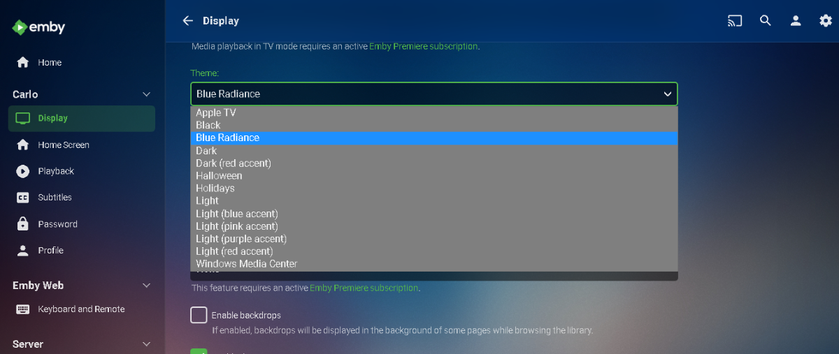 Carlo 4561 Posted May 25, 2021 Posted May 25, 2021 With Premiere you have multiple color themes to choose from. This picture is taken using the Blue Radiance theme which is my favorite. With the use of CSS you can do this like change some elements. This pictures shows the watched status changed from the green checkmark to a left hand ribbon check. ra You can change your home screen graphics for different libraries to get looks similar to these two pics: There are a lot of canned things already done with CSS if you look here: https://emby.media/community/index.php?/forum/144-web-app-css/