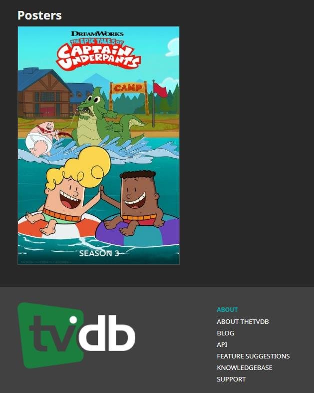 THECOBRA 1 Posted May 20, 2021 Author Posted May 20, 2021 1 minute ago, Luke said: Hi, it's not update related, it's tvdb related. (Figure 1 and Figure 2) TMDB and Fanart posters can be loaded, but TVDB posters cannot be loaded. (Figure 3) On the TVDB website, the poster is displayed normally, indicating the existence of the picture. https://thetvdb.com/series/the-epic-tales-of-captain-underpants/seasons/official/3 (Figure 4) The thumbnails of each episode of TVDB are displayed normally. In the last version of Emby, TVDB's images loaded just fine.