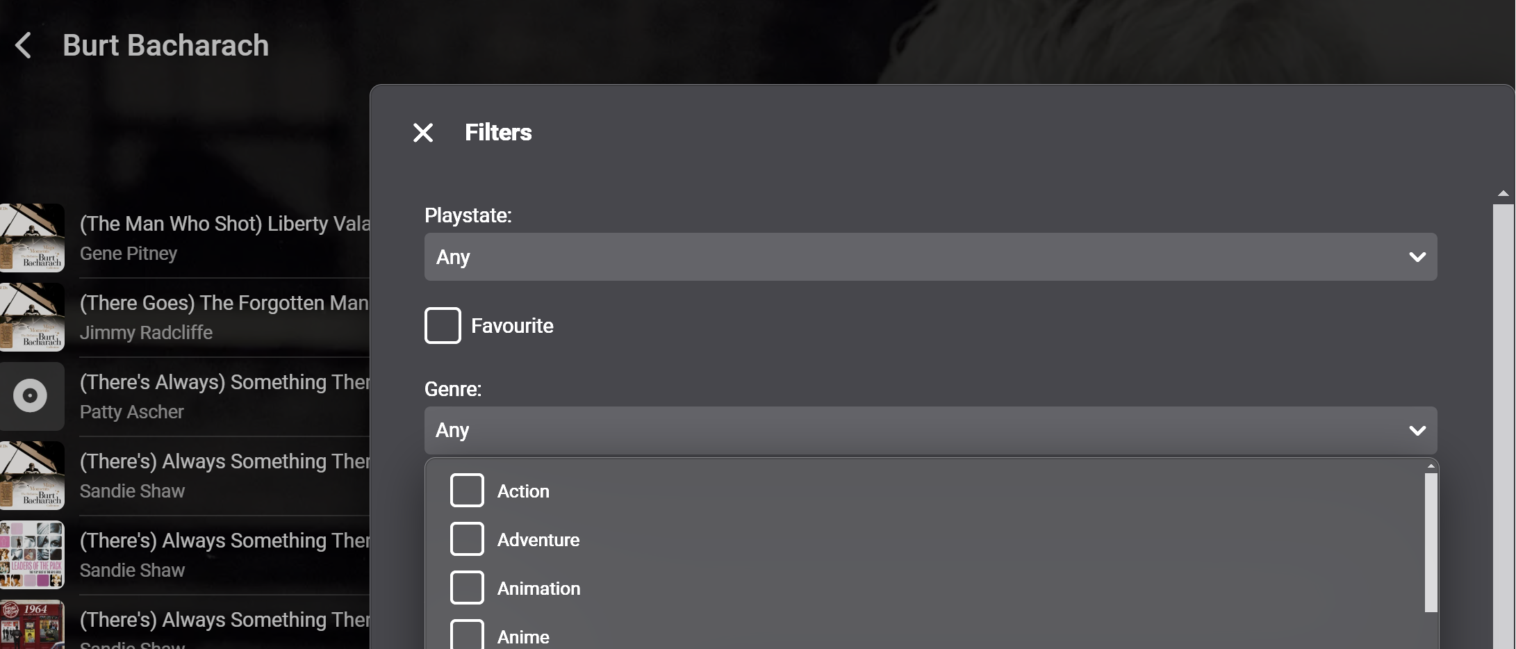 ginjaninja 605 Posted March 2, 2024 Posted March 2, 2024 (edited) it seems artist genres can come from songs they are tagged composer or writer on should composer/writer credits contribute to an artist's genres?....not sure but burt is definitely not well known for britpop or trip hop :-)...it wouldnt be an issue if it was obvious when entering the genre how burt was credited to these genres.. the song view could filter it but current song genre filters are tv genres edit looks like a bug...the main song view can be filtered by music genres Edited March 2, 2024 by ginjaninja
