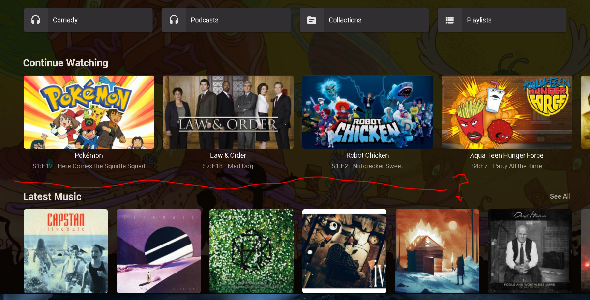 Dreakon13 143 Posted May 23, 2021 Posted May 23, 2021 Hi, I have an Audio Books library I set up for episodes of a podcast/radio show I listen to. Each show is about 3-4 hours long, so I made it an Audio Book library so it would save the session when I took breaks, and I could jump back to where I was before. This is working fine, my place is being saved as I listen and stop playback... but the Continue Listening section on the Home page isn't showing up anymore. I do have it as part of my Home Screen settings, and it seemed like it was working fine prior to the update. My Home screen currently goes from Continue Watching directly into Latest Media, even if I have an audio book/radio show episode in progress. Not a huge issue, it's still saving my progress so I can go and find the show and open it and all is good, but having it on the home screen waiting for me was convenient. Maybe it's an intended change as part of the 4.6 update and how I was using it isn't correct anymore, but if there's a way I could bring it back that'd be cool. Thank you.