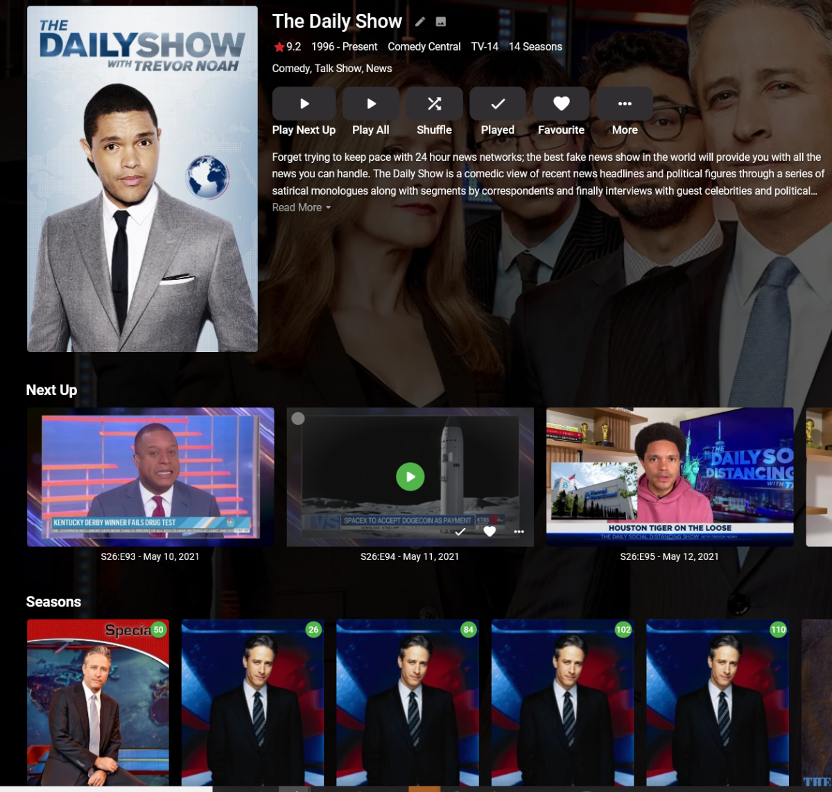 access 11 Posted May 25, 2021 Posted May 25, 2021 (edited) Hello! So with the brilliant changes that have come in on 4.6.0.50 where Mixed Media is now listed as a TV series (rather than as a per episode), my Documentary and Anime could be all grouped nicely. One of my old problems has reared it's head. There are whole categories of Television Shows where you don't watch every episode, you just watch the most current one. This typically relates to News programs, Talk Shows, Saturday Night Live, Award Shows, Panel Shows etc. Many of these shows are on 3-5 times a week and effectively my entire "Latest Television" was always 100% filled with this type of content. On any given day no "normal shows" would ever appear in the rotation as there are just so many episodes of "daily" shows. Okay, so simple solution, split them into there own Library, now I have two rows, this works out really nicely. However people tend to only watch SNL or a Talk show if that particular guest is good, usally these shows are never watched entirely. So you can see I haven't watched 1347 episodes of the Daily Show, but I have watched a lot. When I click on the Daily Show, it shows the episode *after* the last episode I watched. So its quite difficult to find the most current episode, as it's listed next episode first. People usually want to just watch the Latest News or Latest Talk Show or Latest SNL etc. I was using a nice hack prior where I was putting the "Daily" style shows in the Mixed media category. This produced a really nice experience for my users where they could see just the Latest episode of that series and even review the Guest in the episode name to see if they wanted to watch it. This also allowed the user to if they wanted to, to select the series and just watch any episode they wanted. I'm thinking this is still a really good experience, but I think I was probably the only one benefiting from it, and maybe there needs to be an official feature for this. Being able to toggle the view between episode and series view is obviously how I can get back to the above experience, but maybe there is another solution some where where we tag shows as Daily? Or something like that? Where the episodes are shown in reverse order where the latest episode is first, rather than the last one watched? Just thought I would throw it out there as I'm not sure the best solution, and obviously I'm not requesting change it back to how it was, as this is by far the better default option. Thanks Edited May 25, 2021 by access 1