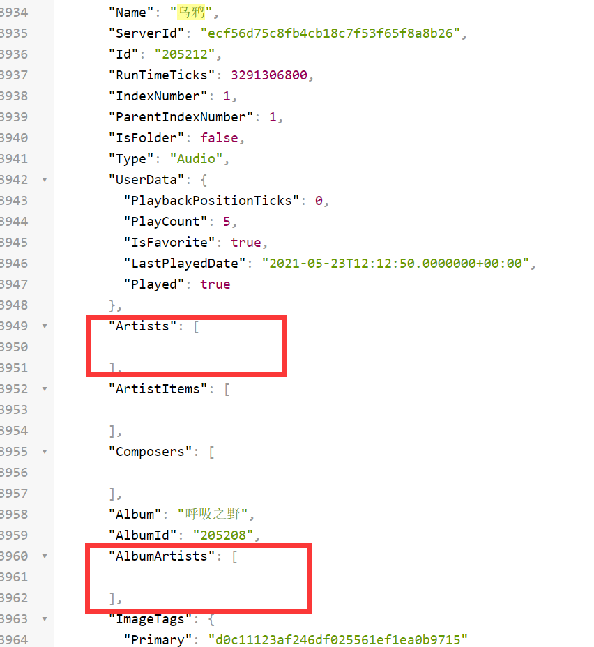 docker latest version 4.6.1.0 use API to get my favorite songs can't get artist info