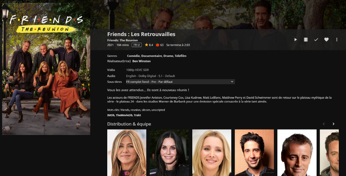 Happy2Play 9780 Posted June 16, 2021 Posted June 16, 2021 (edited) 17 minutes ago, spideytoto said: My library is set on "films" movies on both jellyfin and emby, i have set the same scrapper, but only jellyfin can find data for friends and emby see nothing, not even a wrong movie Not true as, as a Film it is identified just fine as that is what there providers list it as. The issue is if you want it as a TV show you have to do the work yourself. 2021-06-16 16:03:54.166 Info App: MovieDbProvider: Finding id for item: Friends the reunion 2021-06-16 16:03:54.167 Info HttpClient: GET https://api.themoviedb.org/3/search/movie?api_key=f6bd687ffa63cd282b6ff2c6877f2669&query=Friends+the+reunion&language=en 2021-06-16 16:03:54.316 Info HttpClient: GET https://private.omdbapi.com?apikey=fe53f97e&plot=full&r=json&s=Friends+the+reunion&type=movie Edited June 16, 2021 by Happy2Play