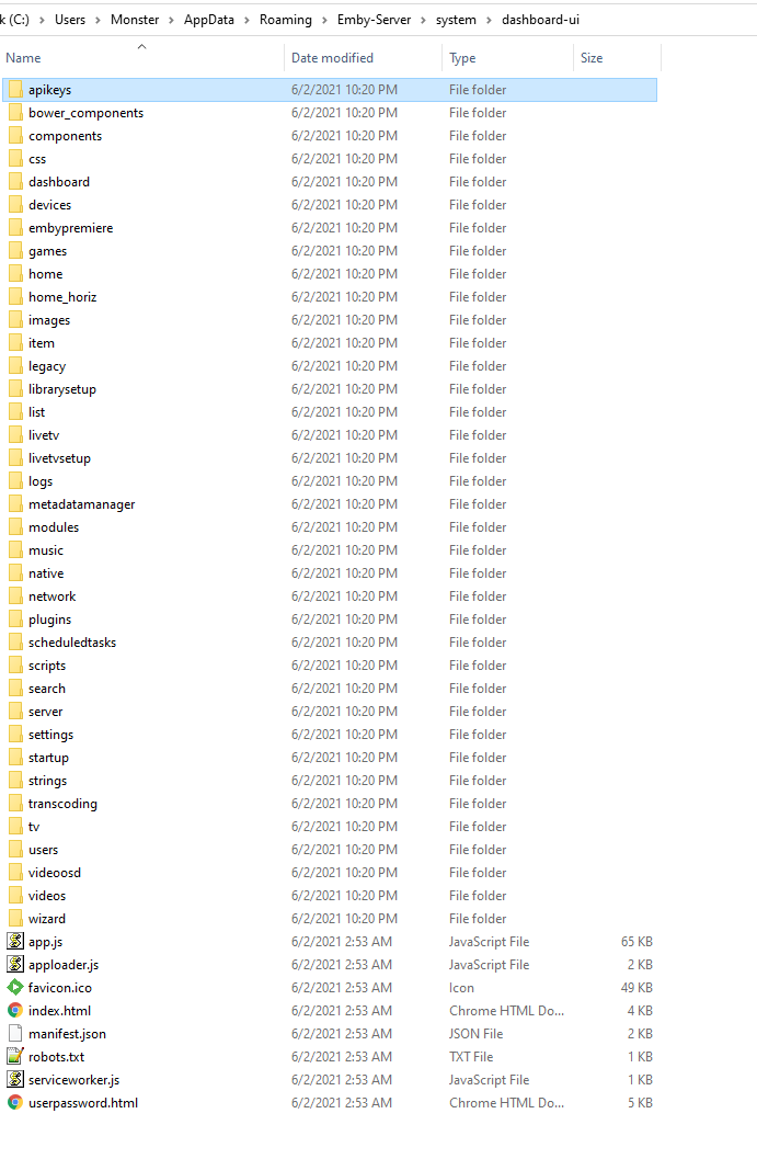 Luke 42078 Posted June 3, 2021 Posted June 3, 2021 Does this file exist? C:\Users\Monster\AppData\Roaming\Emby-Server\system\dashboard-ui\apiclient.js