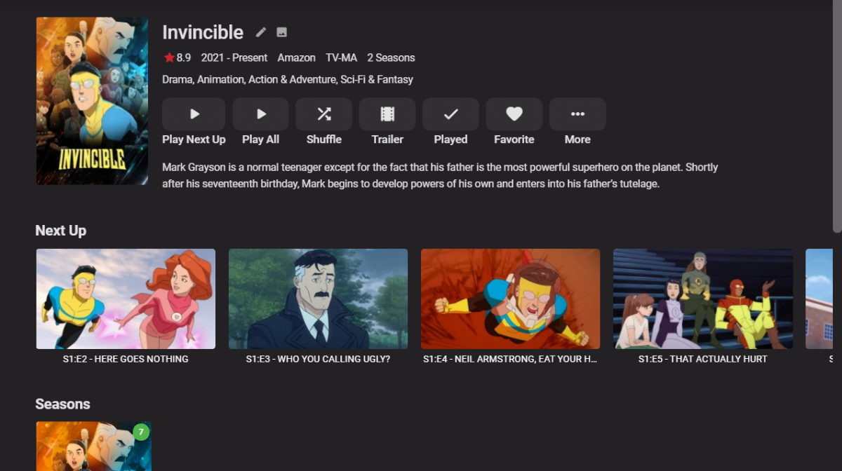 I removed backdrop in invincible and the episode cover shows up.