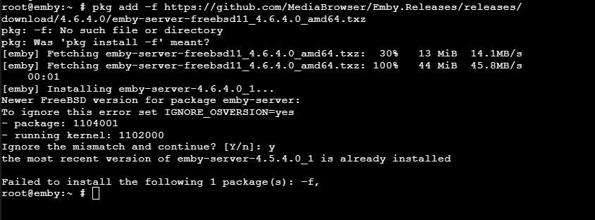 cgcmgr 28 Posted June 8, 2021 Author Posted June 8, 2021 So far I have updated to 12.0. It is now TrueNAS and no longer FreeNAS I see. So I guess to update Emby, I must use: pkg add -f https://github.com/MediaBrowser/Emby.Releases/releases/download/4.6.2.0/emby-server-freebsd12_4.6.2.0_amd64.txzhttps://github.com/MediaBrowser/Emby.Releases/releases/download/4.6.2.0/emby-server-freebsd12_4.6.2.0_amd64.txz rather than: pkg add -f https://github.com/MediaBrowser/Emby.Releases/releases/download/4.6.2.0/emby-server-freebsd11_4.6.2.0_amd64.txzhttps://github.com/MediaBrowser/Emby.Releases/releases/download/4.6.2.0/emby-server-freebsd11_4.6.2.0_amd64.txz Is this correct?