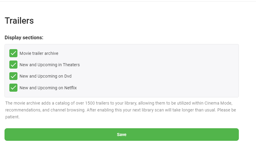 Luke 42077 Posted June 9, 2021 Posted June 9, 2021 If you want to remove the trailers folder then simply uninstall the Trailers plugin and restart the server. It's only there because you installed it. On the second screen I just tested and did not see any problem changing the options. Please attach the emby server log from when you tried to do that. thanks.