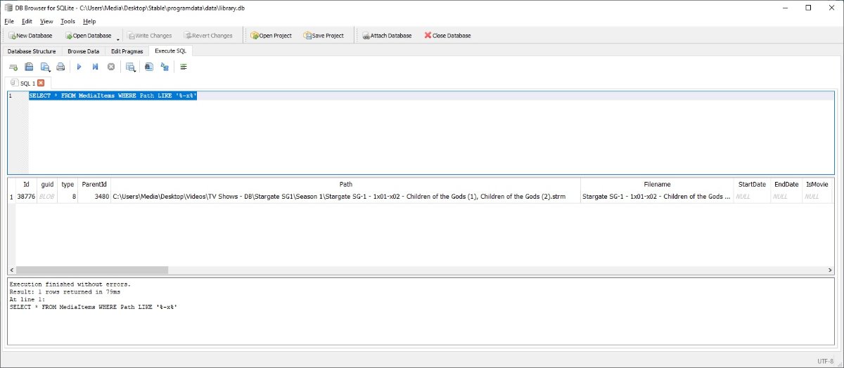 Happy2Play 9782 Posted June 15, 2021 Posted June 15, 2021 (edited) Or make a copy of your library.db run this on your copy in a database viewer. This will show you all your multi-episode items assuming you have used the same naming scheme. SELECT * FROM MediaItems WHERE Path LIKE '%-x%' Edited June 15, 2021 by Happy2Play 1