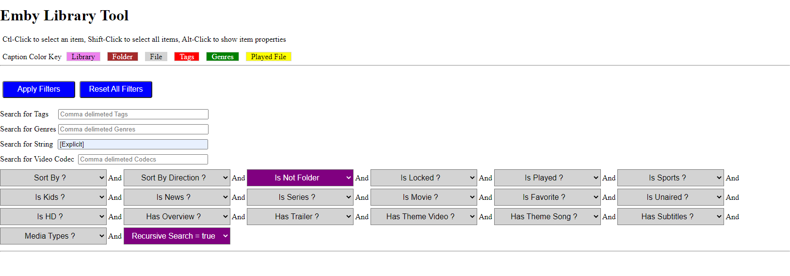 VicMoore 754 Posted January 3, 2022 Author Posted January 3, 2022 Hello Happy2Play... The search and filtering is all being done within Emby. All I do is form the URL for the API end point. That URL has Recursive set. I will check again to make sure that I am not doing anything wrong with the API. Thanks for bringing this to my attention. Vic