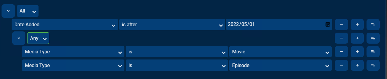 ShaneP 248 Posted June 14, 2022 Author Posted June 14, 2022 On 5/9/2022 at 2:05 AM, BaiGanJia said: dear ShaneP, Is there a way to add in batches, by copying and pasting, For example, I have a list of movie names need to add. (movie1,movie2,movie3,move4,move5.....movie100) in this vesion of plugin, I need to add them one by one,( because the last option will not be remembered, so I have to repeatedly - click the dropdown, select "movie name", - click the second dropdown, select "is", - click the third box, enter "movie name", Going over and over again until I've added all 100 movies, it is a tedious and repetitive process, is there a way to simplify the experience? For example, after adding the first movie, provide a copy button, I can directly copy the last settings and continue to add, so that I can save a lot of time for clicking the drop-down boxs to select, or, provide an edit box, paste all movie names to this frame, , and the program will automatically adds these movies in to playlist. like this Hey @BaiGanJia, great idea, and seems quite doable.. I'll see the effort involved, might need be the next release, but the following. 1