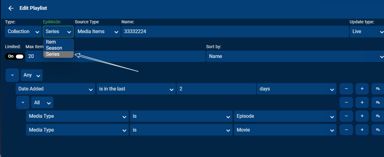 BaiGanJia 21 Posted May 9, 2022 Posted May 9, 2022 (edited) On 5/7/2022 at 1:25 AM, ShaneP said: thanks so much @DarKni8, I promise I won't let it die, Things are just very hectic with work at the moment, we are pushing out a rather large feature for public preview, so don't even wanna see code on the weekends :D, things will die down soon enough and I'll be able to dedicate the time I need to this project, I really enjoy it, and wanna make it super kick ass! dear ShaneP, Is there a way to add in batches, by copying and pasting, For example, I have a list of movie names need to add. (movie1,movie2,movie3,move4,move5.....movie100) in this vesion of plugin, I need to add them one by one,( because the last option will not be remembered, so I have to repeatedly - click the dropdown, select "movie name", - click the second dropdown, select "is", - click the third box, enter "movie name", Going over and over again until I've added all 100 movies, it is a tedious and repetitive process, is there a way to simplify the experience? For example, after adding the first movie, provide a copy button, I can directly copy the last settings and continue to add, so that I can save a lot of time for clicking the drop-down boxs to select, or, provide an edit box, paste all movie names to this frame, , and the program will automatically adds these movies in to playlist. like this Edited May 9, 2022 by Byebye