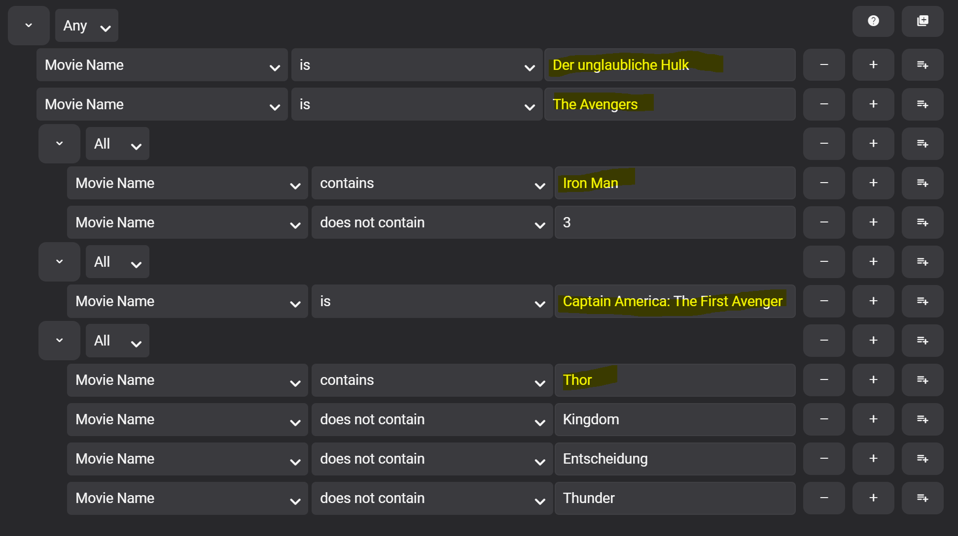 Junglejim 385 Posted December 23, 2022 Posted December 23, 2022 (edited) 11 hours ago, Eigeplackter said: Thank you, ...but that doesnt work, if iy choose collection it creates new collections with those entries, those are not syncing with KODI, as 1 movie can only be part of 1 collection. And Im facing another one. I made a Smart Playlist MCU Phase 1, i screwed up some filters and some movies were missing. Happens, no big deal, but after editing and refreshing SPL it does not change the content anymore: As you can see it should contain 5 itens, it does contain 4 (and 1 doubled by TopPick plugin as it seems): What am I missing ? Couldn't you just use 'Movie Name' 'is' for all five movies? You could even + 'Year' to it to get more specific. Top Picks stuff get auto tagged with 'top-pick' so you could filter that out. Sorry didn't have time to test it out, just throwing some ideas out there. Personally I use Emby's add to playlist feature for MCU timeline stuff. I just add them one at a time, it takes longer to create the list but there in the order I added them. This is my MCU list (currently 29 movies). If a new movie is released I just add it to the list add drag it to the right spot if needed. Edited December 23, 2022 by Junglejim 1
