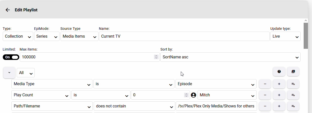 tattmg 1 Posted January 24, 2023 Posted January 24, 2023 8 minutes ago, GrimReaper said: You cannot make a playlist of only TV shows - you can either make a Playlist of only episodes or a Collection containing only TV shows - which one you prefer? Edit: Btw, in your screenshot you need Genre (Tree crawl) and preferably "contains" instead of "is". @GrimReaper That did it, thanks so much. 1
