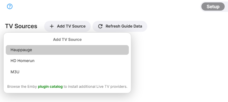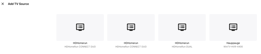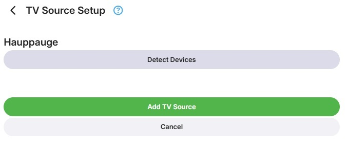 To add an Hauppauge device, click on + Add TV Source and select Hauppauge