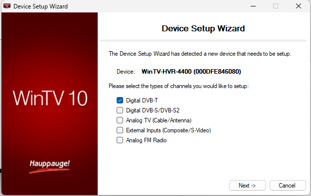 You will then see all the detected new Live TV tuner devices, select the Hauppauge device you wish to add