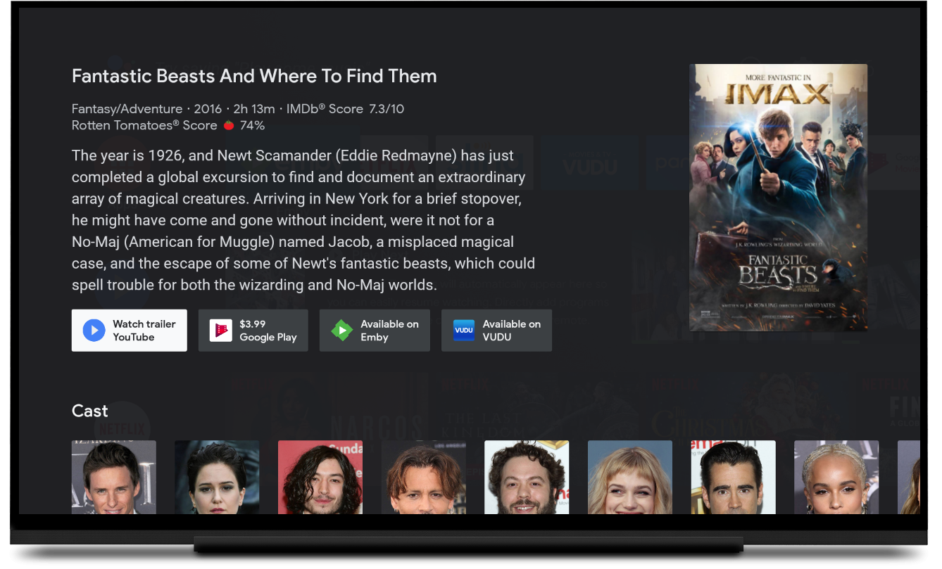 Designed with with typical usage in mind, you won’t have to go hunting through your library to find the content you are most likely wanting to watch right now. The home screen shows you the items you were watching but hadn’t finished, your latest un-watched movies, the next episode of all your current TV shows and what’s on Live TV right now.